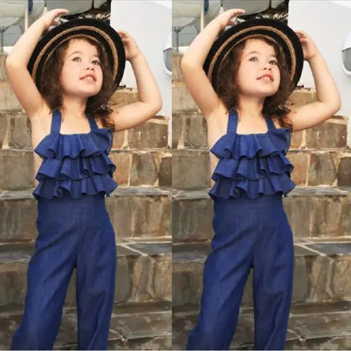 If You want to buy for 2018 New Summer Kids Girl Halter Denim Blue Bib Pants Romper Ruffles Backless Sleeveless Jumpsuit P, then 2018 New Summer Kids Girl Halter Denim Blue Bib Pants Romper Ruffles Backless Sleeveless Jumpsuit P may be make you love