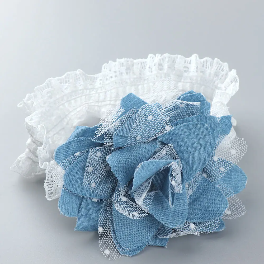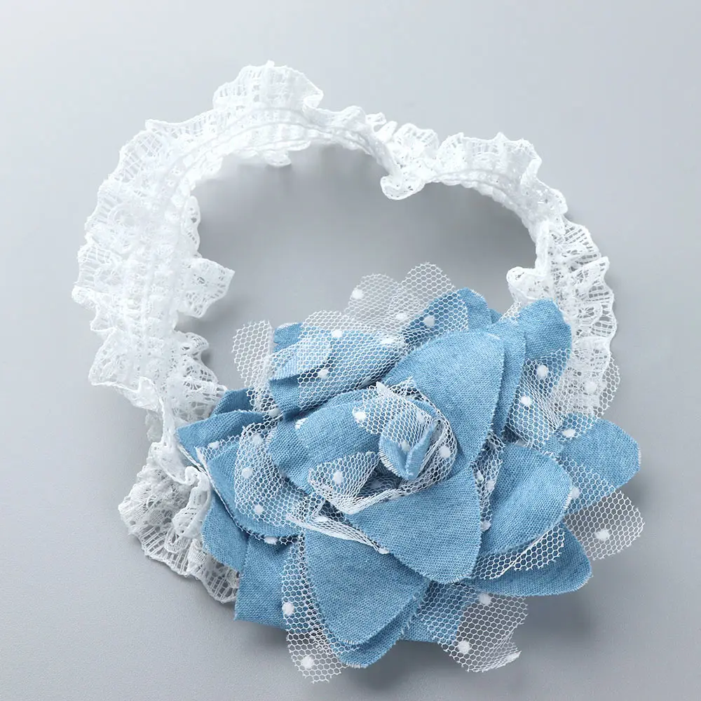Best Offer for Hot Selling Creative Baby Girl Flower Shape Headband Infant Elastic Jean Cloth Dots Hairband Hair A