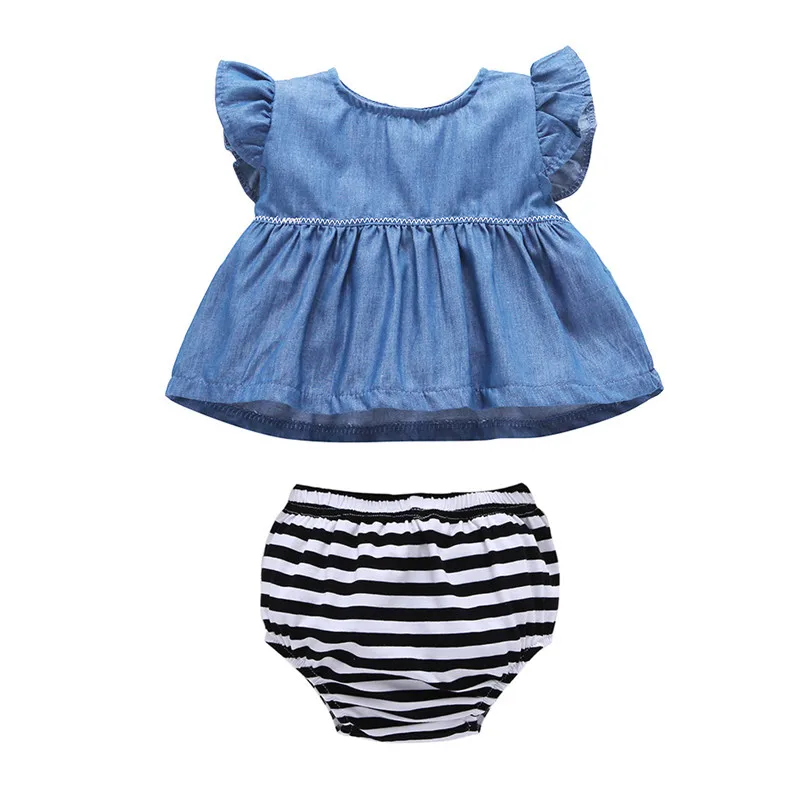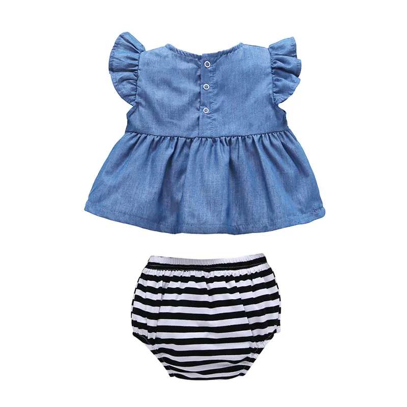 Special Price of New Suit Romper Children's Costume Summer Baby Girl Jeans Triangle Short Sleeve Romper Shorts Two P