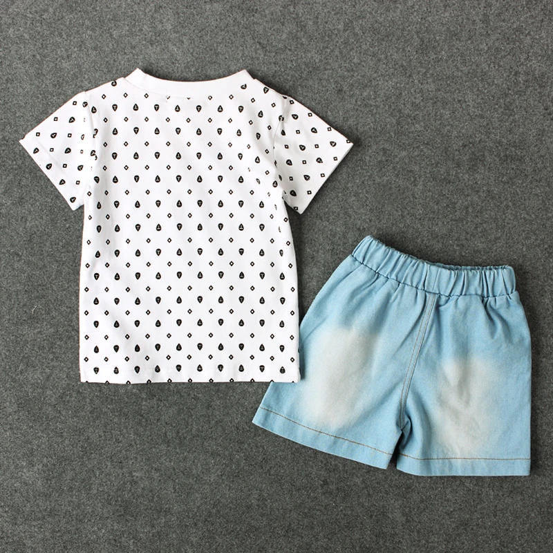 Best Offer for Rorychen New Brand Sport Clothes Set Baby Boy Black Polka Dot Short Sleeves T-shirt jeans Pants For