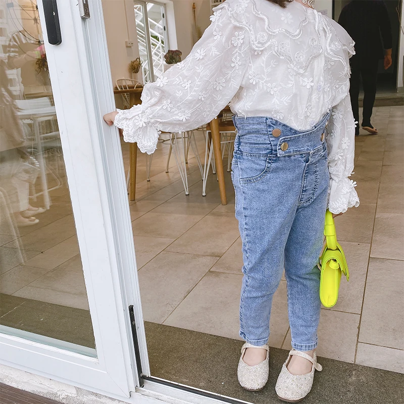 0 Response to " Spring Summer girls jeans baby trousers kids denim pants children bottoms streetwear crop button ir"